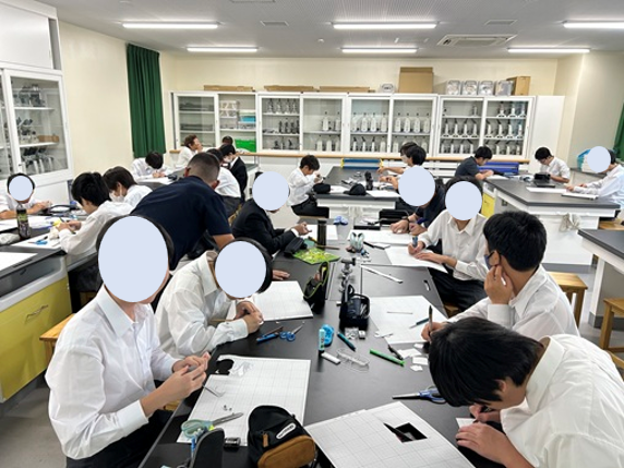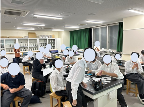 町田一中科学部での今年度2回目の講座で1,2年生28名の参加です。今回は従来のような生徒へのインプット型の講座とは異なり、生徒の創造力に委ねるアウトプット型の講座で、生徒に「教える」ことがありません。このような指針の下で生徒たちはオリジナルのコマを創るという課題に挑戦しました。この講座は当ラボではサイエンスカフェ-2のカテゴリーに属し、初の試みでしたが生徒たちは創造性と個性を大いに発揮して限られた時間を存分に楽しみ、2時間はあっという間に過ぎました。